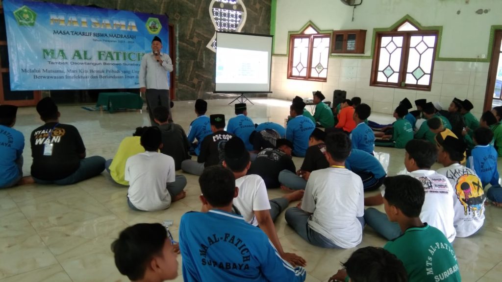 Memasuki awal tahun pelajaran baru, setiap siswa akan mulai mengenal lingkungan kehidupan yang baru juga khususnya siswa kelas X. Salah satu kegiatan yang wajib dilakukan bagi siswa baru di MA Al Fatich adalah Masa Ta’aruf Siswa Madrasah (MATSAMA). MATSAMA menjadi suatu kegiatan yang sangat penting khususnya untuk siswa MA Al Fatich karena setiap lembaga pendidikan memiliki aturan-aturan yang harus dipahami oleh siswa.