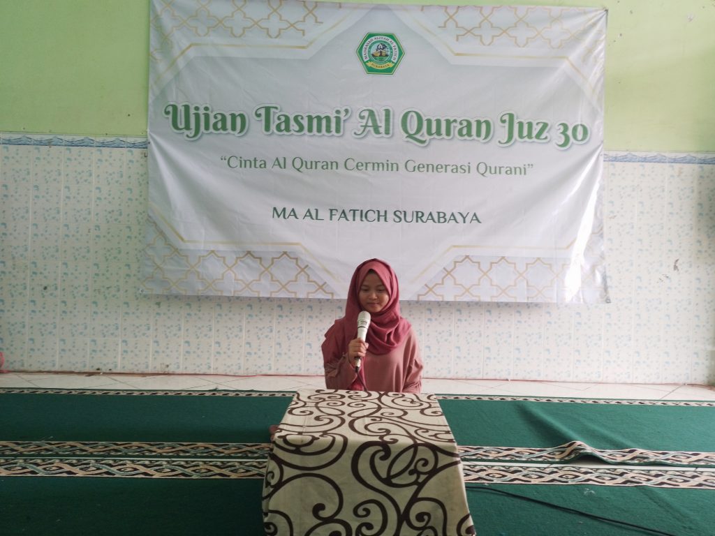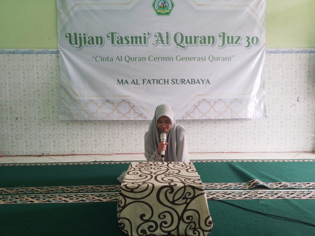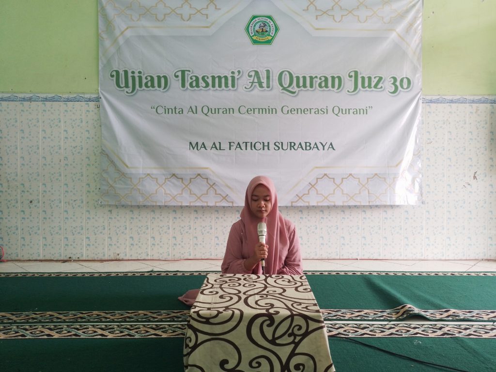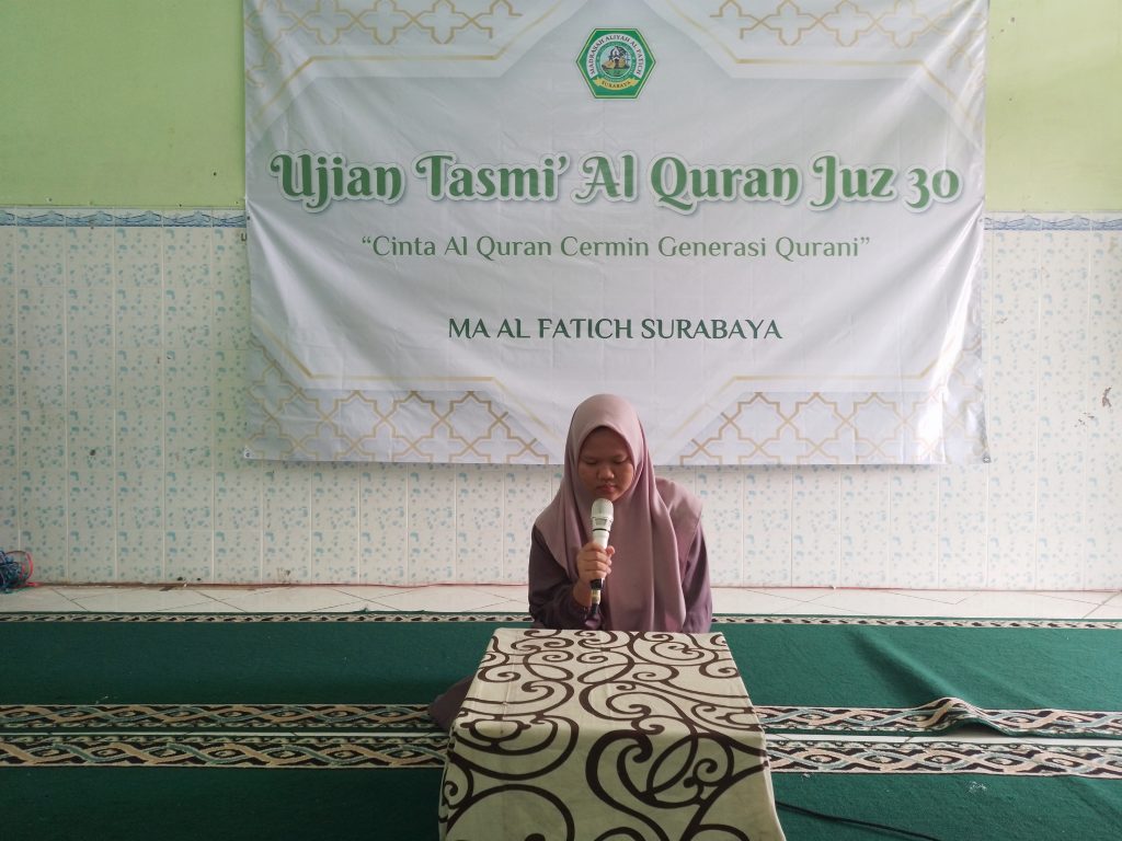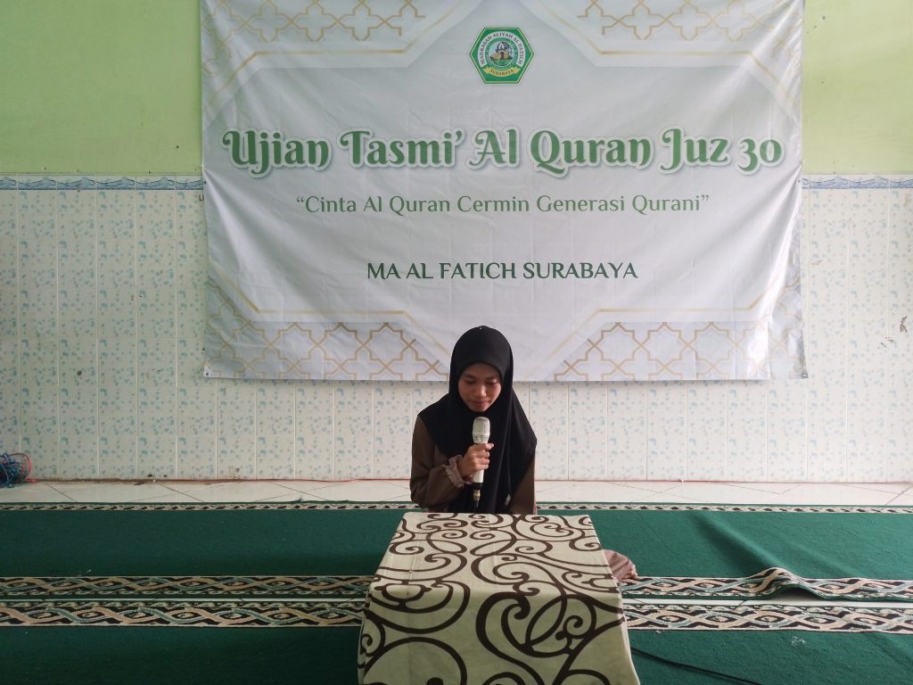 Pada tanggal 24 april 2025 MA Al Fatich mengadakan ujian tasmi’ juz 30 yang dimulai pada jam 08-00 – selesai. Ujian ini diadakan sebagai salah satu bentuk perhatian madrasah terhadap murid-murid yang memiliki potensi hafalan al quran dan juga untuk mengetahui hasil dari bimbingan guru terhadap murid-murid tersebut tiap harinya.